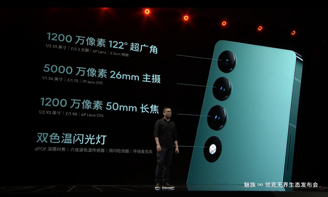 相机部分:魅族20 INFINITY无界版大家说像袖扣,官方称为「灵袖设计」,行业首款Unibody无界蓝宝石镜片,1.3mm晶穹无界模组,前置32MP,后置50MP主摄 有OIS(索尼IMX766)+12MP超广角2.5cm微距(IMX563)+12MP人像 有OIS(IMX663);