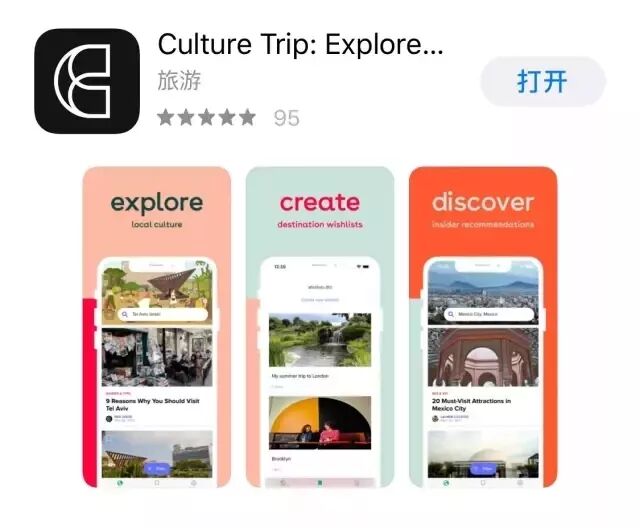 在Culture Trip上,你可以透过别人关于旅行的文章或视频,得到一些灵感启发;了解最贴近现实的当地风土人情(real local),创建自己的旅行清单,还能直接通过它来预定住宿等等。既实用,又深度,让你的旅程变得和别人有那么一点点不同。