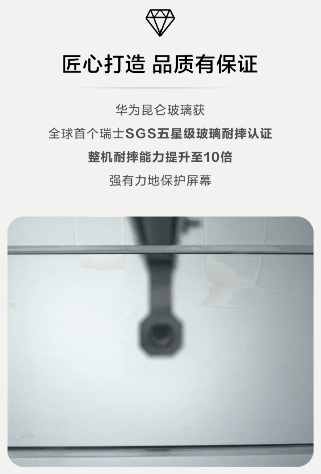 官方介绍称,华为昆仑玻璃采用纳米微晶玻璃材质,获得“全球首个瑞士SGS五星级玻璃耐摔认证”,能够强有力地保护屏幕,“整机耐摔性能提升至10倍”,需要进行昆仑玻璃更换服务的用户可以在华为商城下单后前往线下服务店中进行更换,也可以直接到店参与相关活动。