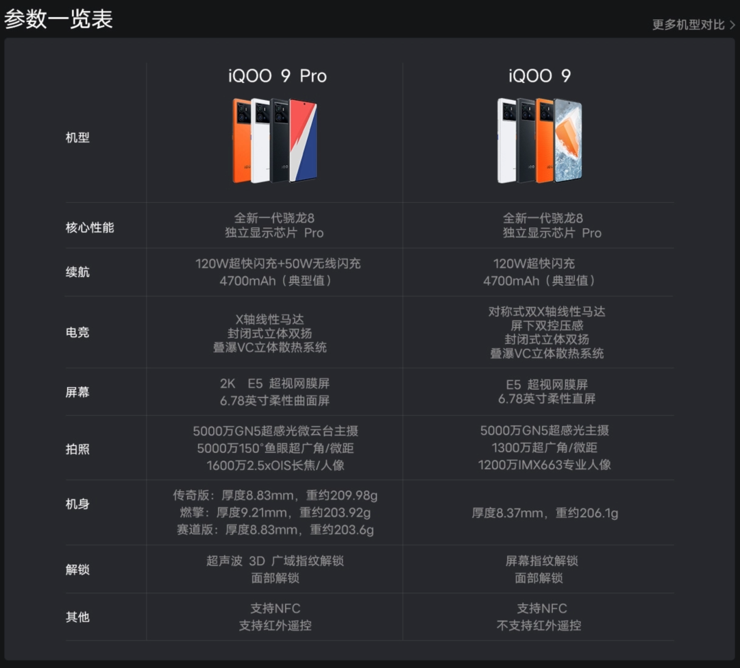 具体iQOO 9 Pro的配置大家可以看上图,超声波3D广域指纹算是一个特别点~