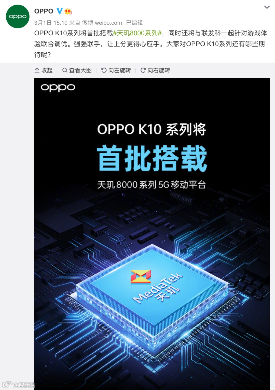 有爆料称OPPO K10 Pro或搭载高通骁龙888处理器,而官方预热OPPO K10系列将会首批搭载天玑8000系列,暂时不清楚是否是指OPPO K10标准版搭载天玑8000处理器,更多信息有待官方进一步预热。