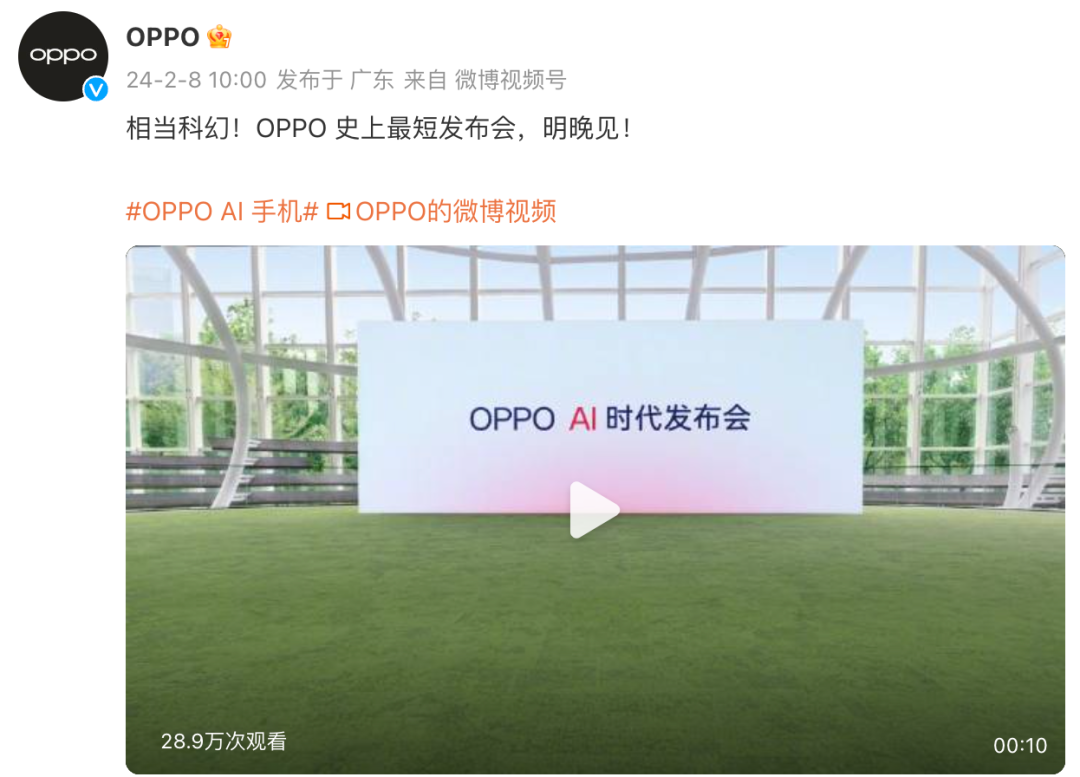 【品牌】明晚除夕夜见 OPPO预热史上最短发布会 聚焦AI