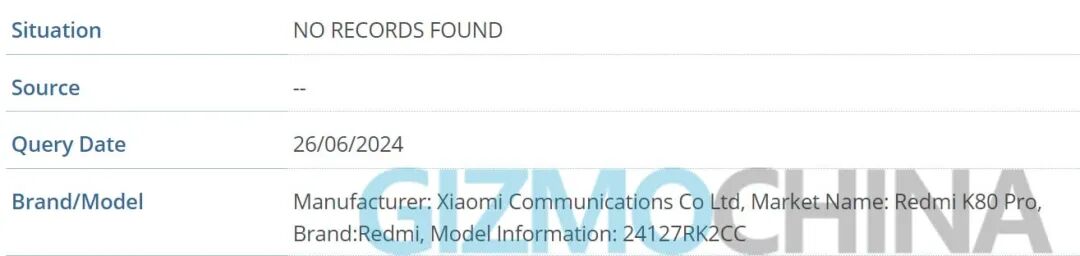 另外就是Redmi K80系列的消息了。据Gizmochina报道,近日Redmi K80和K80 Pro已经现身IMEI数据库。