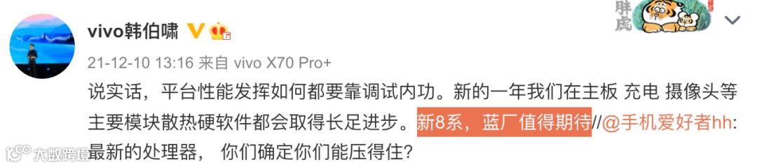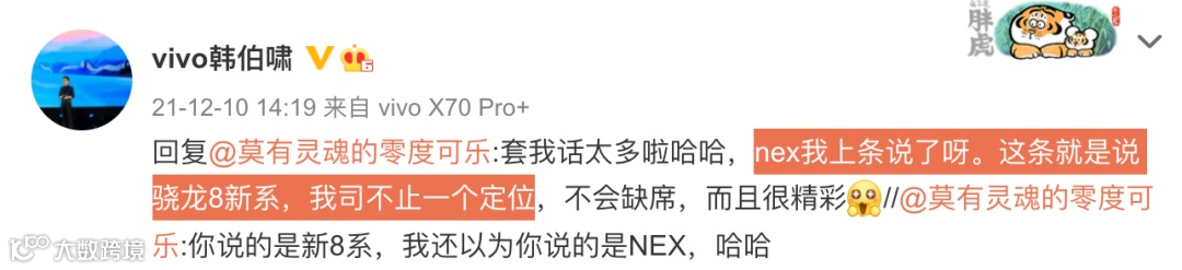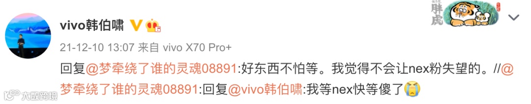 具体vivo X系列和NEX系列新机的配置,早前vivo通信科技有限公司产品经理在微博和网友互动时暗示来看,感觉vivo X80系列或许会有搭载联发科天玑9000的版本?🤔而NEX 5系列新旗舰则应该是搭载新骁龙8。其还表示vivo不止一个定位,还会有搭载新骁龙8的系列(这里说的是折叠屏?🤔),同时NEX系列不会让大家失望。