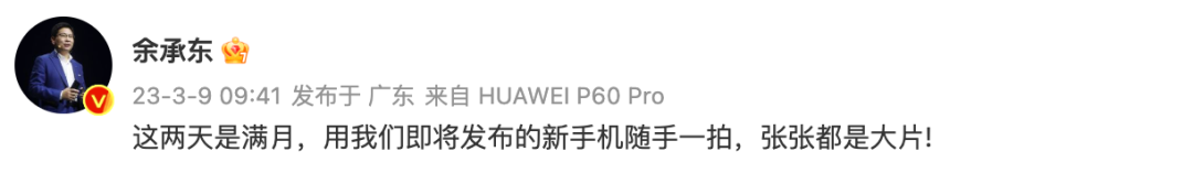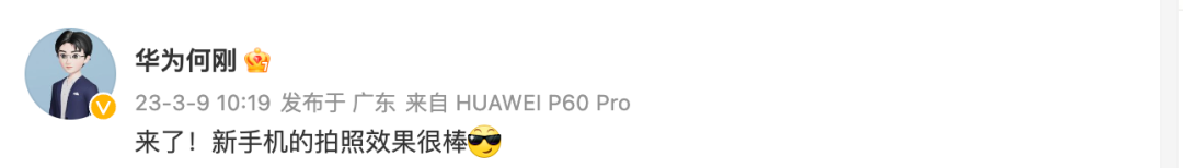 最后是华为这边的消息,华为余承东和何刚今天均在微博亮出了华为P60 Pro的小尾巴。