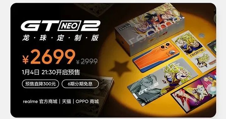 价格上,realme真我GT Neo2龙珠定制版首销降300,12+256GB版售价2699元,目前已经开启预售,将于1月7日0点正式开售。支持6期免息分期。