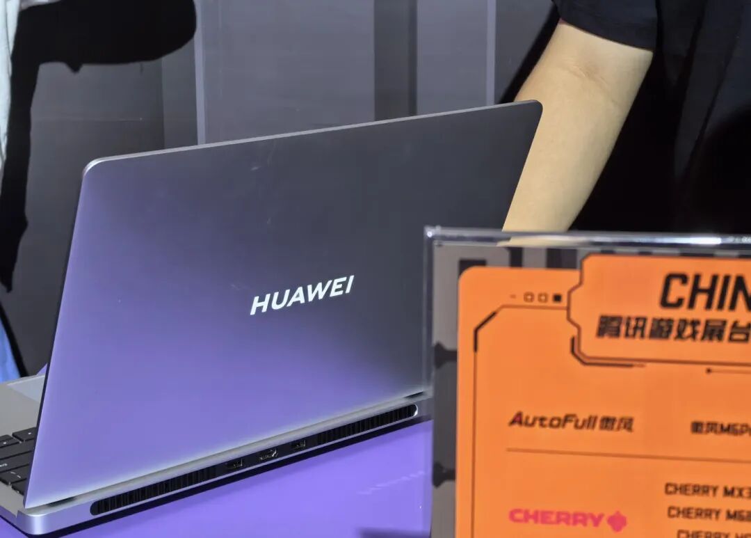 如上图所见,华为有一款未发布的PC产品现身展台,依旧是轻薄风格,但采用了发光logo,另外散热设计也是游戏本才有的风格。消息称这款笔记本电脑正是之前网传的游戏本“GT”。