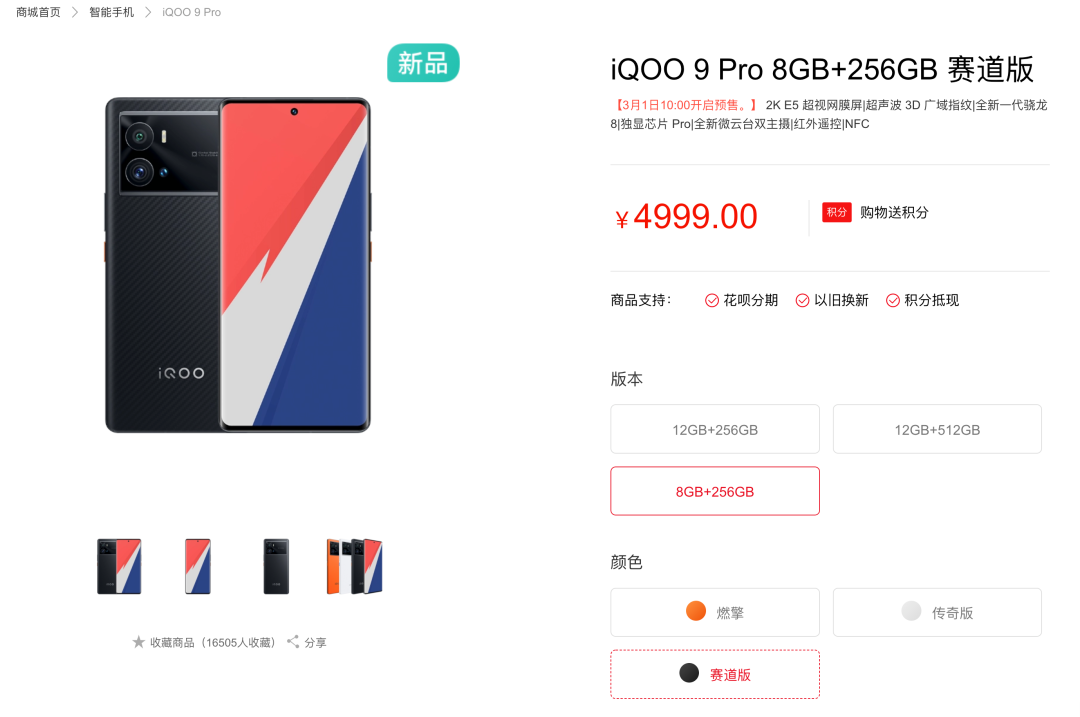 发布于今年1月5日的iQOO 9 Pro早前仅带来了(宝马)传奇版(光哑AG玻璃拼接工艺)、燃擎(橙)·素皮 2 个配色,没想到还有一个赛道版姗姗来迟。(参数戳蓝字跳转回顾)