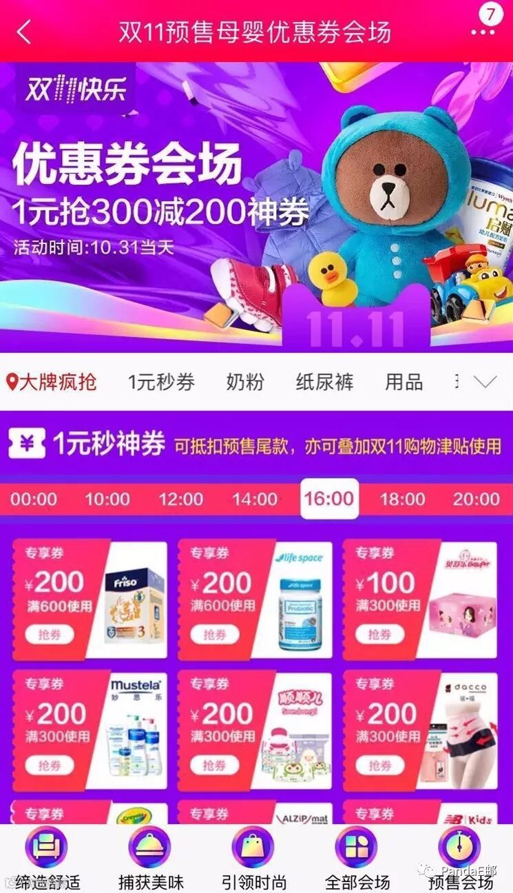 天猫优惠基本有两重,第一:领通用券,购物直接优惠;第二:各分会场、各类目、各店家的优惠和预售。