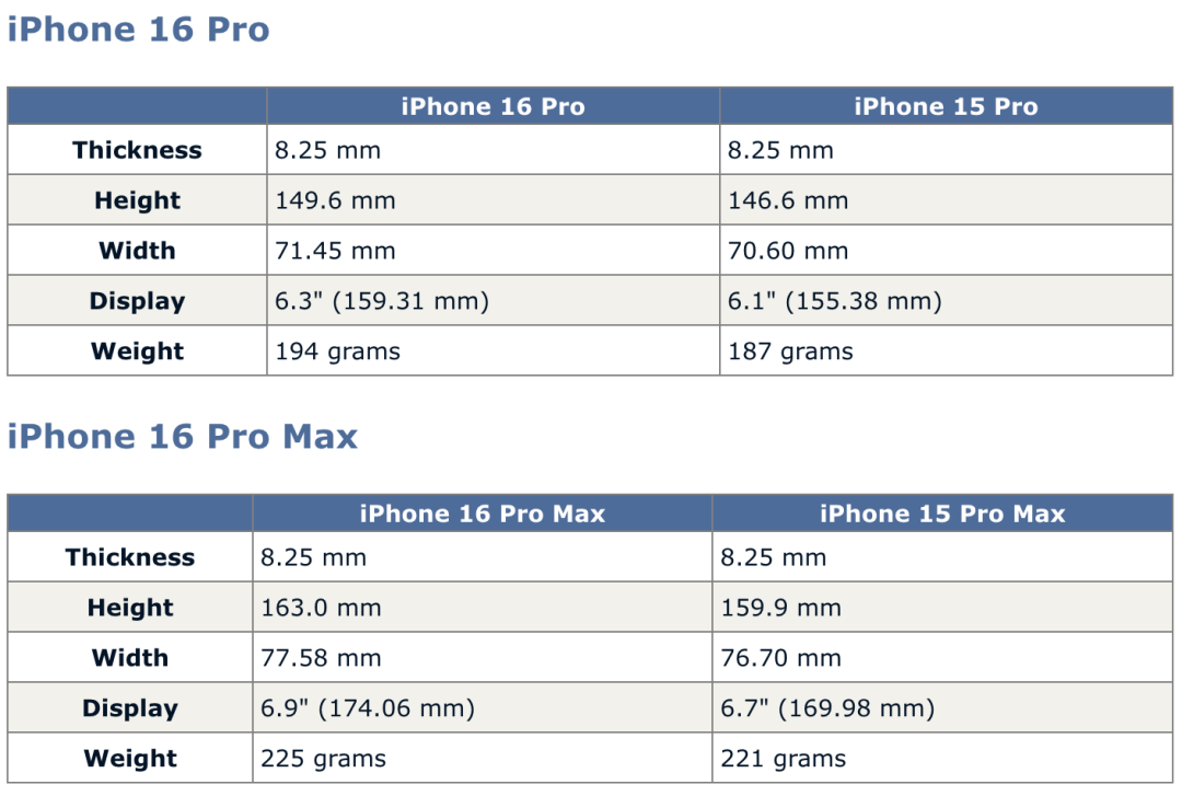 不同的是爆料称iPhone 16 Pro屏幕尺寸将从上代15 Pro的6.1英寸增加至6.3英寸,而iPhone 16 Pro Max从6.7英寸变为6.9英寸,屏幕更大,机身三围也发生了细微变化。细节上报道还称苹果可能会在iPhone 16 Pro和16 Pro Max机身上配备一颗全新的拍照按钮,原先的Action操作按钮也依然存在。