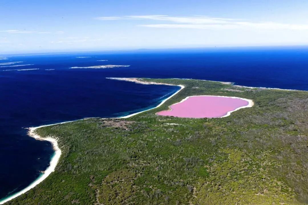 而希利尔湖则上过《国家地理杂志》的封面!虽然面积较小,但是却像是一颗掉在澳洲的小粉钻,即珍贵又美丽。与周围的湛蓝海水的绿地交织辉映,更显特别。想象坐在直升飞机上看梦幻般的粉糊,简直是幸福得冒泡泡~