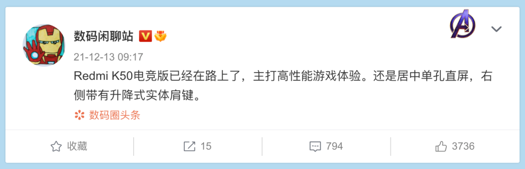 【新机】Redmi K50游戏增强版曝光 居中单孔直屏+升降实体肩键