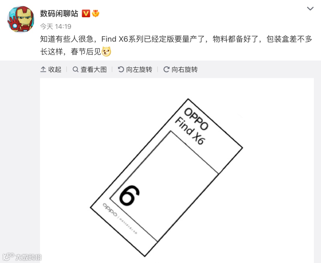 据爆料,OPPO Find X6系列已经定版要量产,物料也已经准备好,并晒出了包装盒的草图,预计春节后发布。