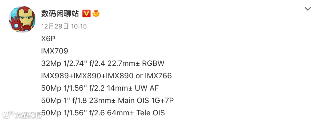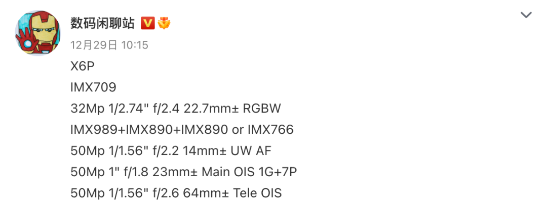影像方面,据爆料OPPO Find X6 Pro前置3200万像素(索尼IMX709),后置5000万像素三主摄:索尼IMX989+IMX890+IMX890 or IMX766,OIS主摄+超广角+OIS潜望长焦的组合。只等农历新年后见了。