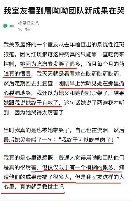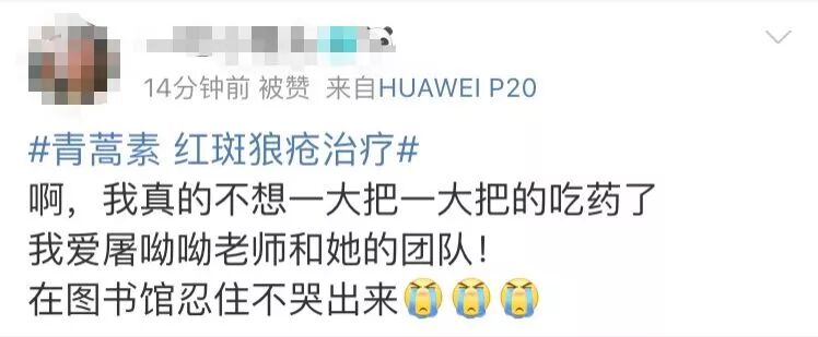 “在图书馆忍不住哭出来,我真的不想大把大把地吃药了,我爱屠呦呦和她的团队!”