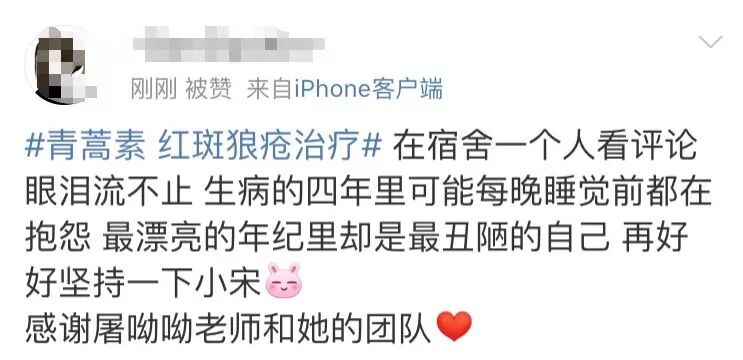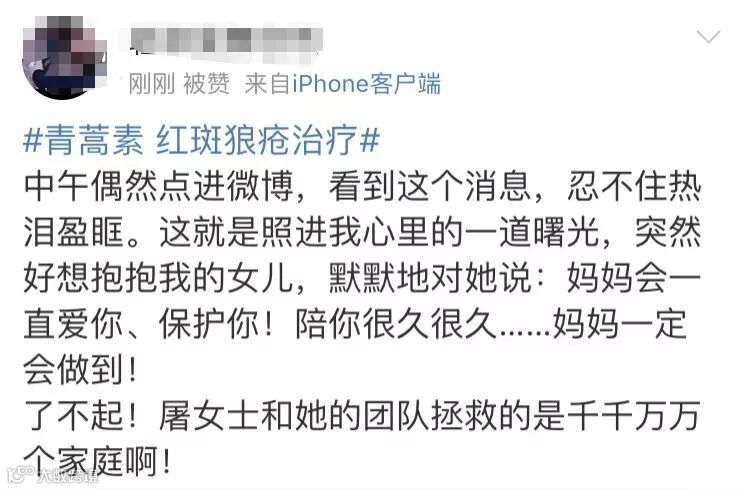 在和病痛纠缠了一整年之后,因为屠呦呦,她看到了希望: