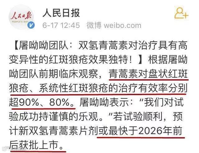 二、青蒿素对于系统性红斑狼疮的治疗有效率,超90%、80%!