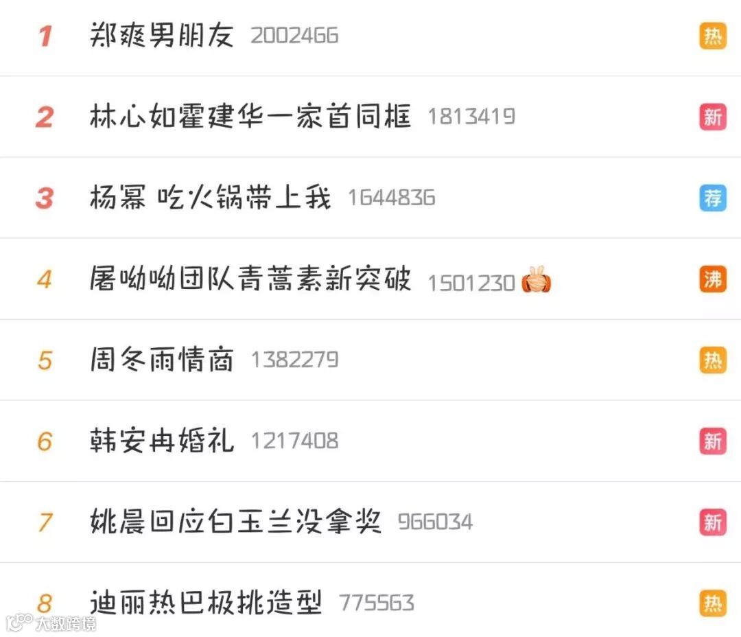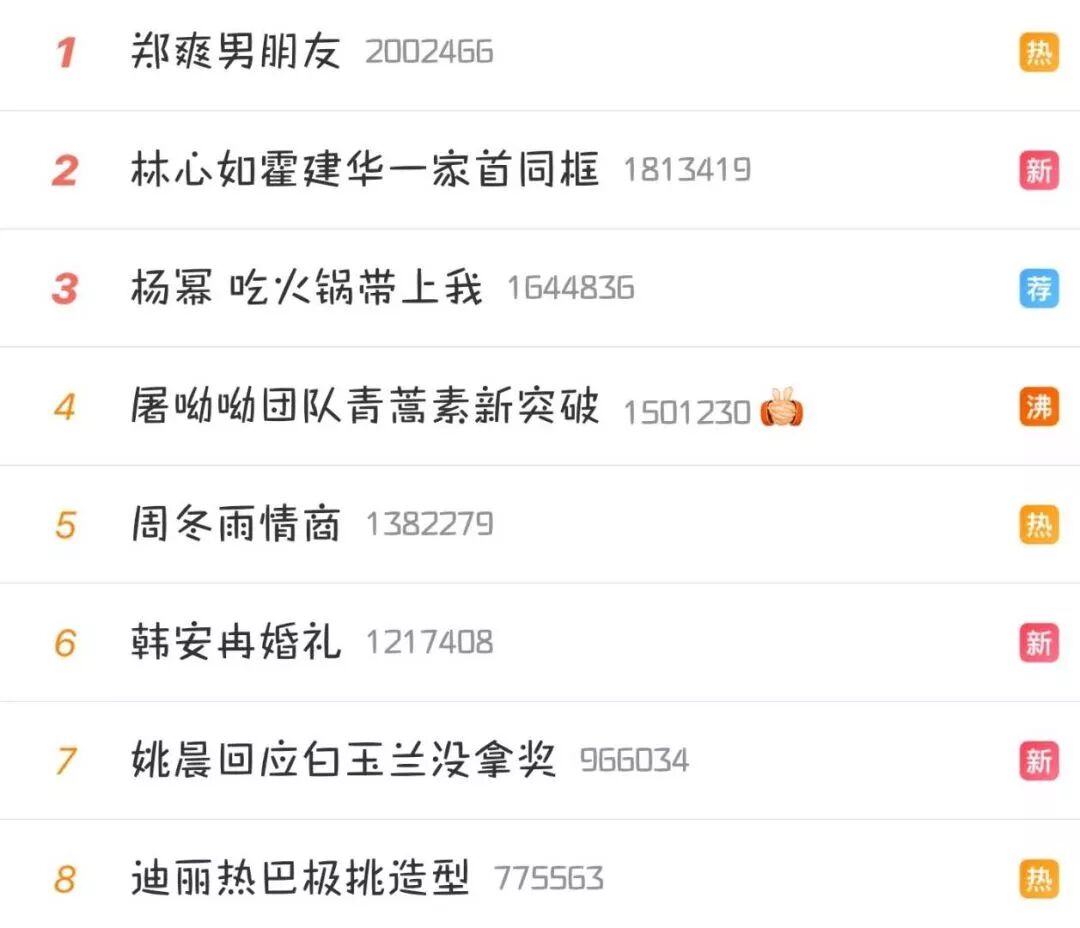 甚至打开热搜,看到的都是“郑爽新男友”传闻,“林心如霍建华一家首同框”,而后“杨幂,吃火锅带上我”……而屠呦呦只能排在他们后面。