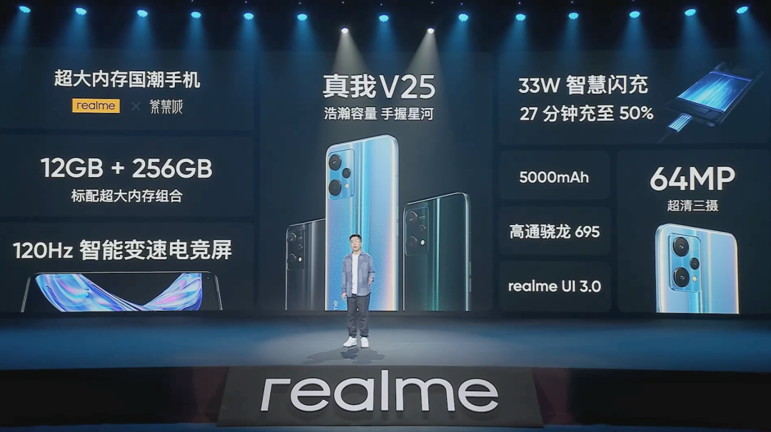 标配12GB+256GB版本,支持DRE动态运存拓展技术,最高可19GB运存;搭载基于台积电6nm的高通骁龙695处理器,支持双模5G,5000mAh电池,33W充电(官方称27分钟可充入50%),搭载基于Android 12的realme UI 3.0等;最终真我V25 12+256GB版售价1999元,将于3月4日0点线上线下全渠道开售。
