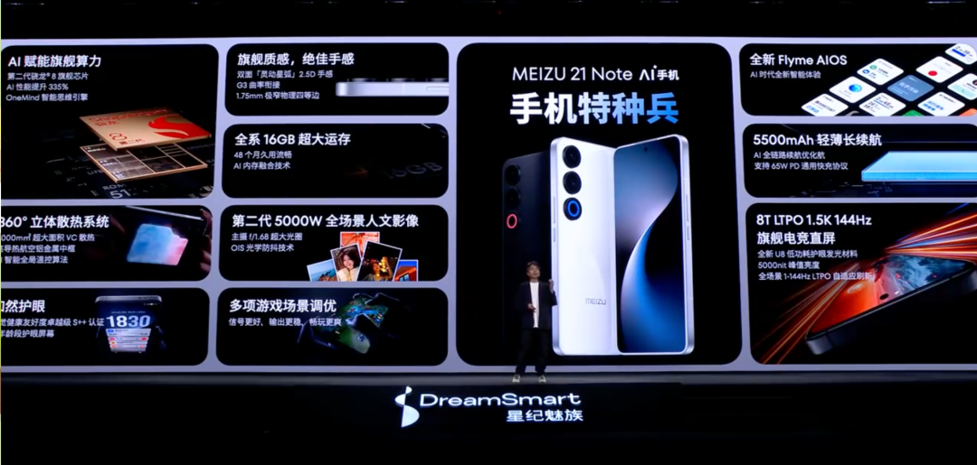 至于发布会介绍的全新Flyme AIOS,魅族21 Note将于5月23日开启内测,具体新功能有:桌面AI搜索、AI魔法消除、AI风格转化、AI生成壁纸、AI游戏超清、AI连麦对话、智能打码、AI笔记总结、AI全局应用录音(转文字后可快速总结摘要)、AI客服等。