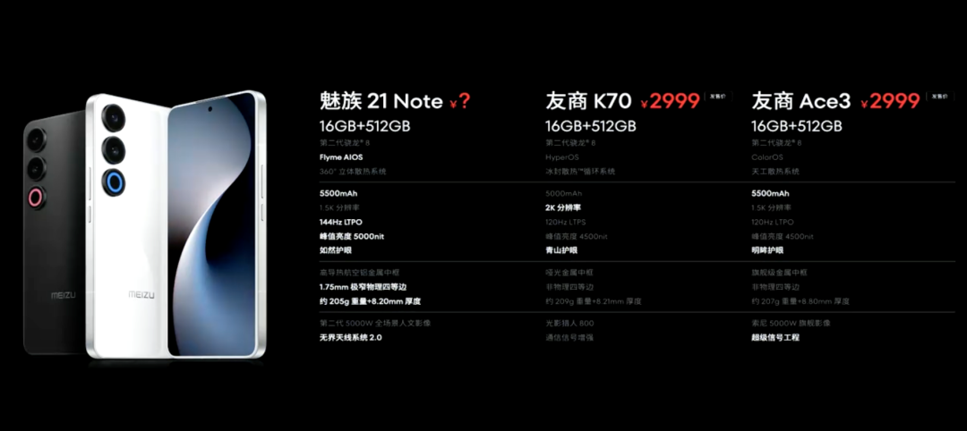值得一提的是,发布会上魅族还各种对比友商K70和Ace3,看了下目前的价格,512GB版本确实差不多,而降价的魅族20 Pro也在同价位,问问大家,四台手机价格差不多,你会怎么选?