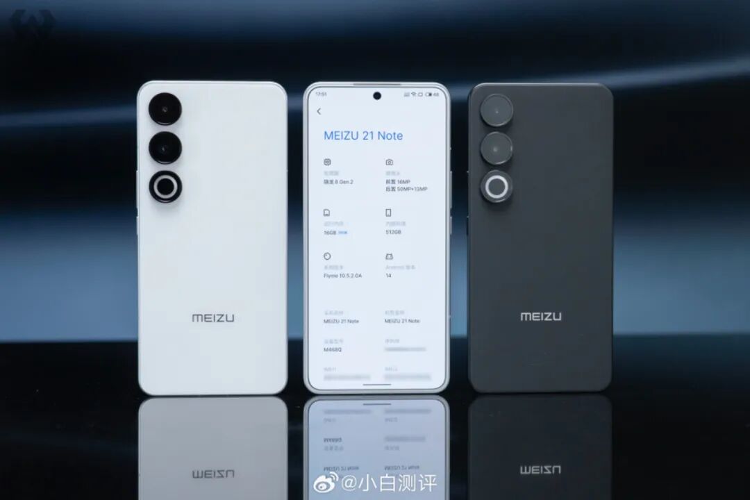 核心配置上,魅族21 Note搭载骁龙8 Gen2处理器,LPDDR5X、UFS 3.1,VC均热板散热面积5000mm²,5500mAh电池,66W充电(兼容QC4+ /PD3.0 PPS等主流快充协议、支持PD充电器),前置16MP,后置双摄50MP主摄有OIS+13MP超广角微距,配备Aicy灵动环、X轴马达、双扬,支持NFC、红外遥控、双频GPS、IP65防尘防水等,USB 2.0,预装Flyme 10.5。