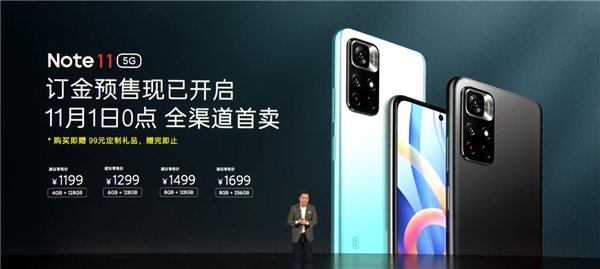 价格上,Redmi Note 11:4+128GB售价1199元,6+128GB售价1299元,8+128GB售价1499元,8+256GB售价1699元,目前已开启定金预售,将于11月1日0点正式开卖。整体价格比隔壁荣耀X30i便宜约100-200元左右。