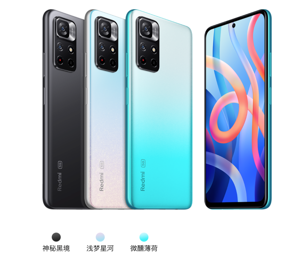 Redmi Note 11主要参数:6.6英寸2400*1080分辨率居中单挖孔LCD屏,90Hz屏幕刷新率+240Hz触控采样率,侧边指纹,浅梦星河、神秘黑境、微醺薄荷3个配色,机身三围163.56*75.78*厚8.75mm,重195g,前置16MP,后置双摄50MP主摄+8MP 超广角;