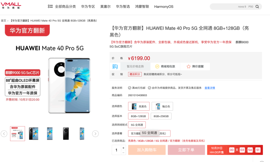 和早前爆料一样,今天查看华为官网,发现上架了Mate 40 Pro 5G官方翻新机。
