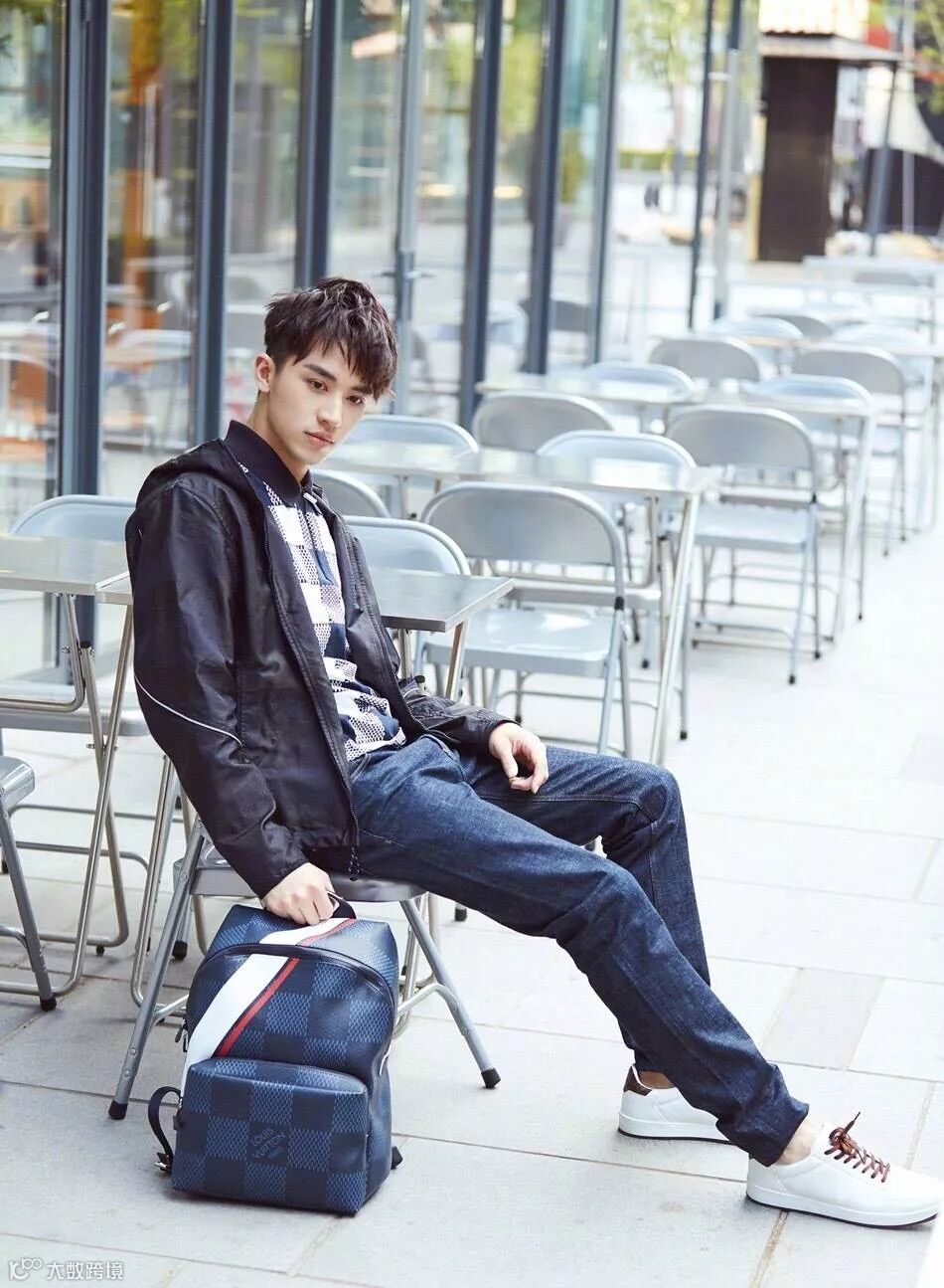 许巍洲最新街拍,防风外套、格纹POLO衫和牛仔裤,一身装扮可是又潮又酷。