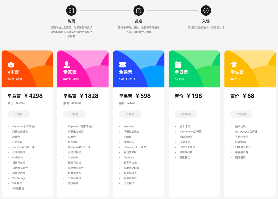参会相关门票也已经开售,学生单日票88元,单日票198元,全通票(早鸟票)598元,VIP 票(早鸟票)4298元,其中早鸟已经售罄。