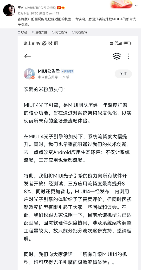 如上图所见,早前官网显示MIUI光子引擎功能则支持搭载骁龙8 Gen1、骁龙8+、骁龙8 Gen2芯片机型,首批支持机型为小米13/13 Pro、小米12S系列、小米12、小米12 Pro、Redmi K50G、Redmi K50 Ultra、小米MIX Fold2。