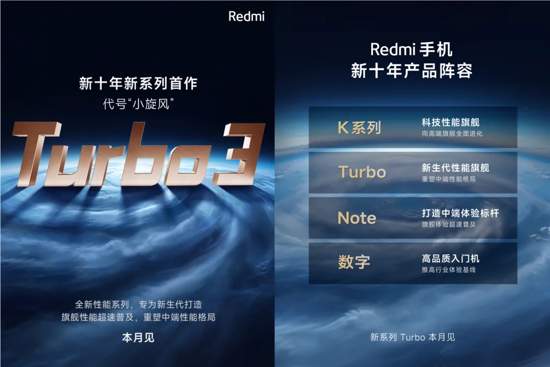 正面则长这样,王腾自夸称Redmi Turbo 3是“最美正颜”。大家觉得这套外观ID怎么?