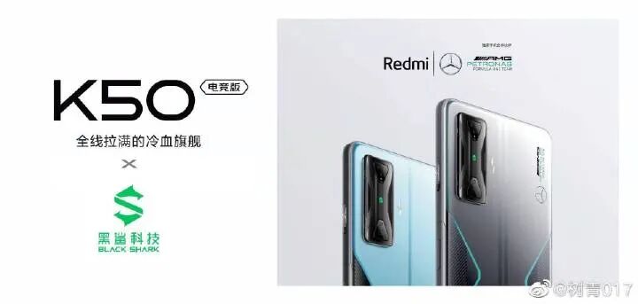 细节上,官方发布了多张「K50电竞版」的真机海报,背部整体延续之前风格,后置相机模组像是黑鲨的缩小版,越看越像小黑鲨~还有网友自制了两张融合黑鲨logo的海报~会玩~