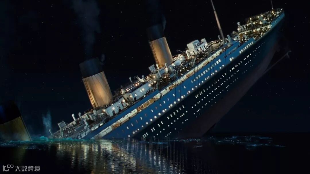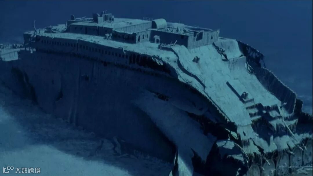 对于泰坦尼克号的沉没,影片里是这样处理的:船头最先沉入海中,船尾因为重力作用,高高竖起在空中;很快,船身因无法承受巨大的压力,从中间断开;船尾以90度角入水,砸向水面,形成巨大的水花。