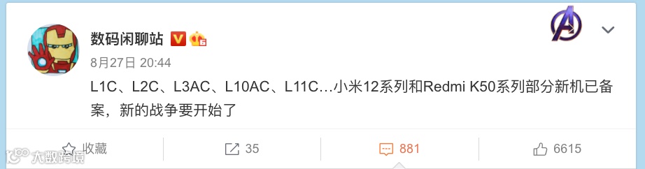 结合早前爆料疑似Redmi K50系列的新机已经备案,猜测爆料的百瓦快充+IP68防水或许就对应K50系列新旗舰。爆料还称K50系列将搭载新一代高通骁龙旗舰系处理器,目前排期12月。或许有望和小米12系列同期打擂台,不知道这次是否是要干翻大哥的节奏~