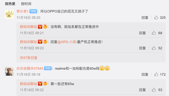 ,但realme和一加等第一批还会有65W快充的新机。