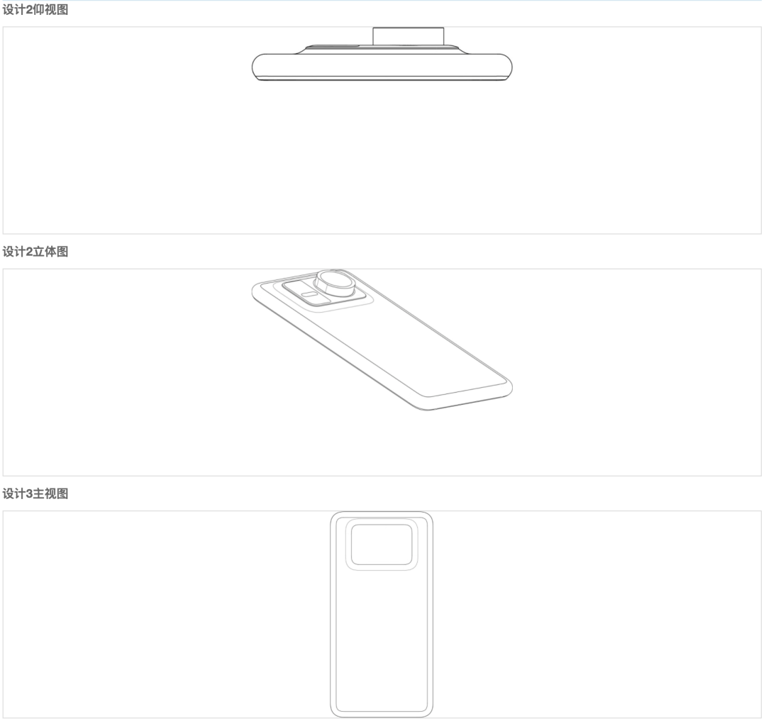 如上图所见,这组专利显示其或采用伸缩镜头,后置相机模组是居中矩形处理。