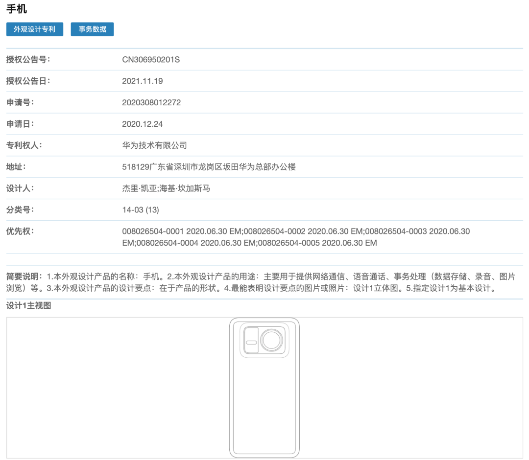 【前沿】华为新机外观专利曝光 伸缩镜头居中后置 P60预定?