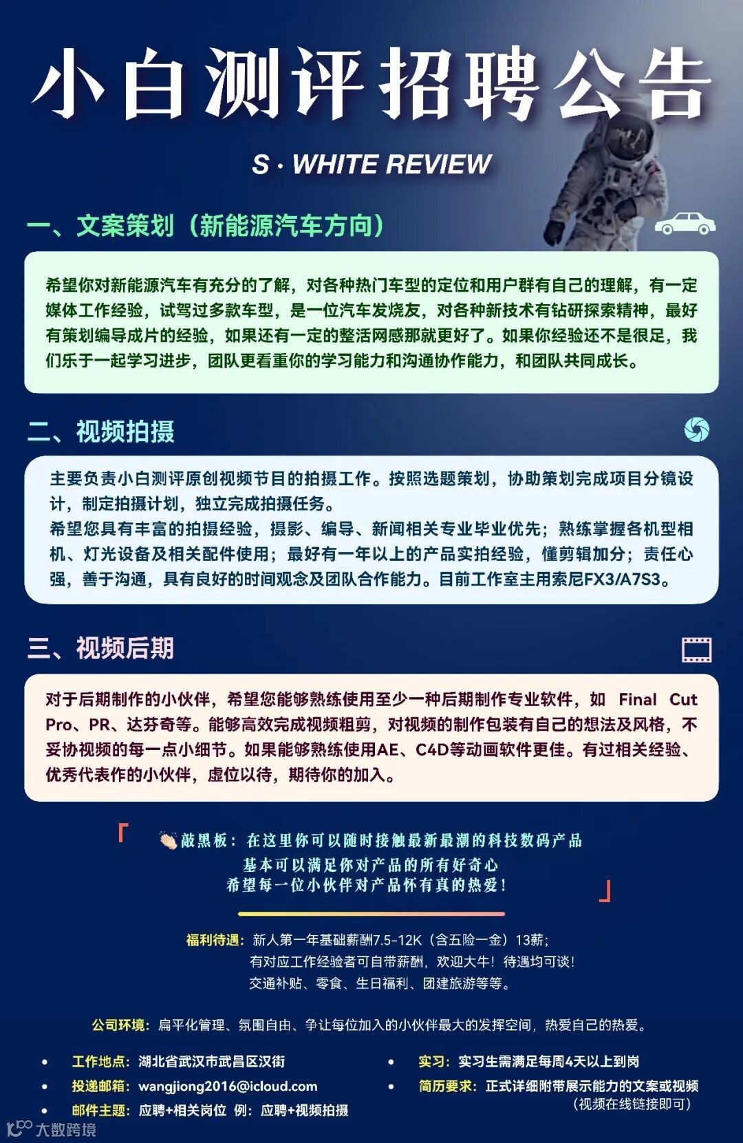 附小白测评招聘公告 简历投递邮箱wangjiong2016@icloud.com