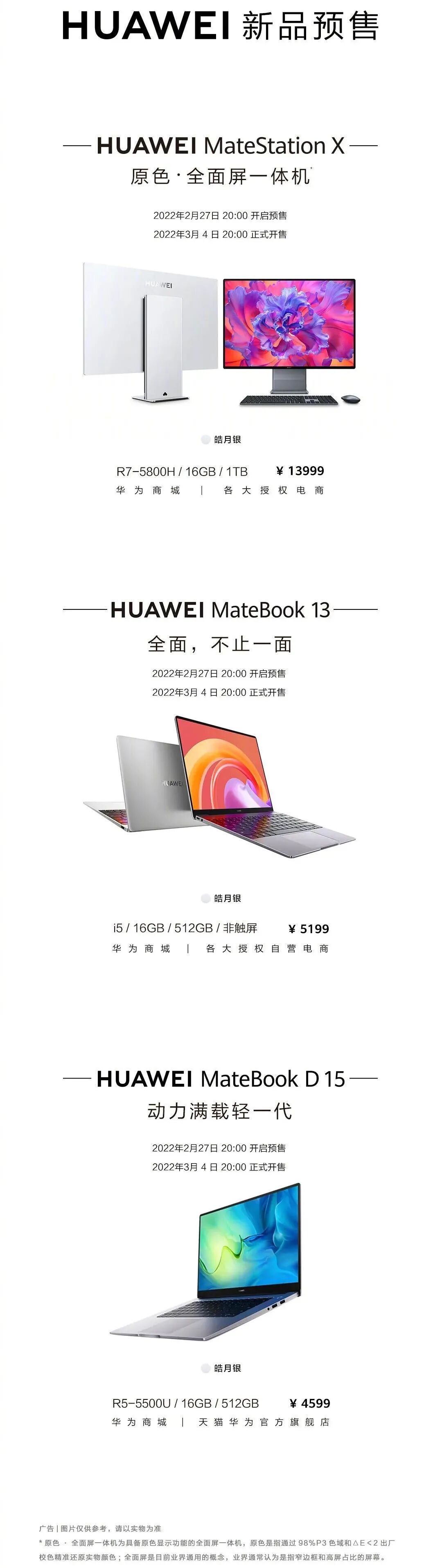 具体有新款华为Matebook 13、新款华为 MateBook D 15 锐龙版以及华为 MateStation X 1TB 版,目前已经开启预售,将于3月4日20点正式开售,不知道是否有大家感兴趣的~