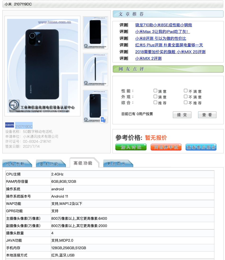 近日,工信部查询到一款型号为2107119DC的小米5G新机,有爆料称其对应的是小米CC 11系列新机,来简单看下配置~