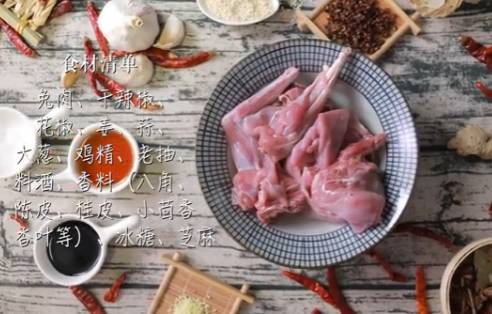 兔肉 干辣椒 老抽 芝麻 盐 姜 大葱 料酒 蒜 香料 冰糖 鸡精 花椒