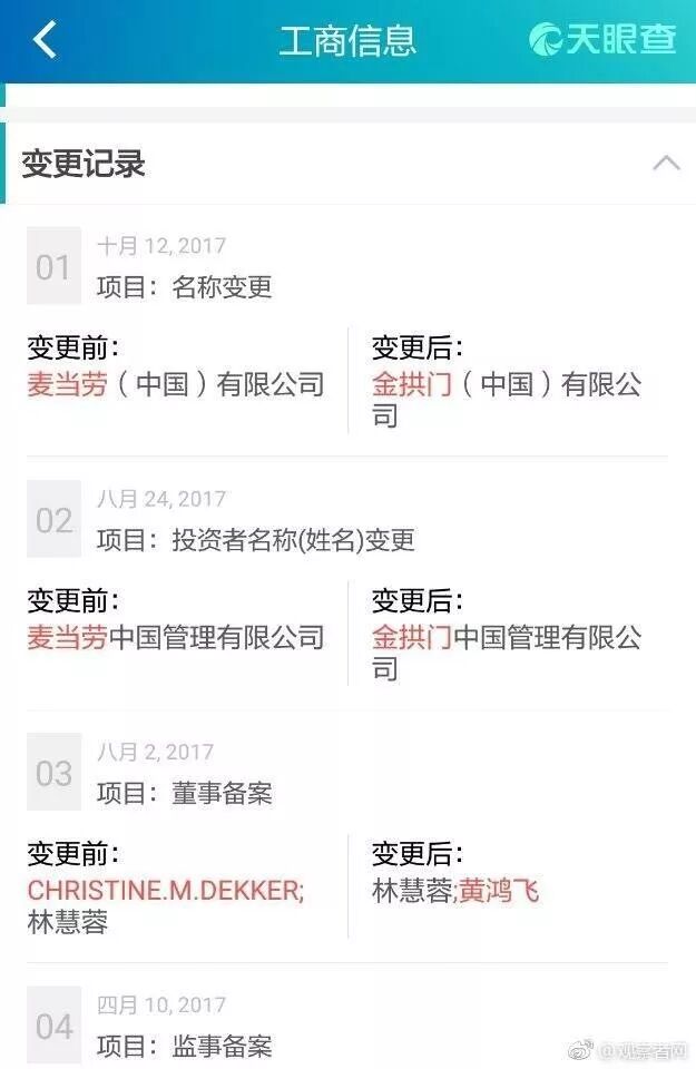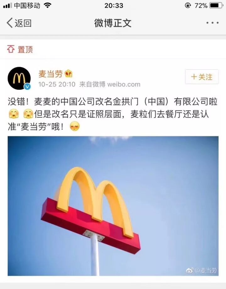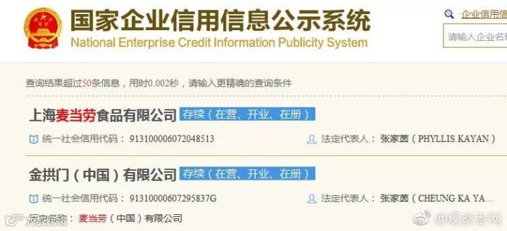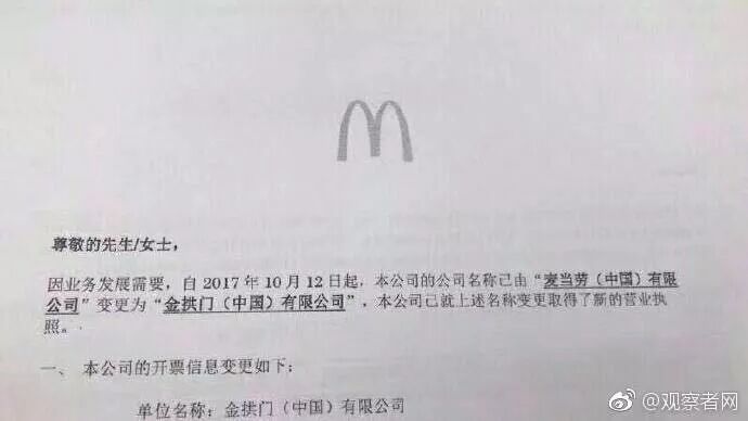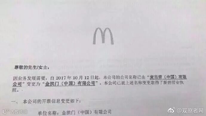 麦当劳中国管理有限公司变成: