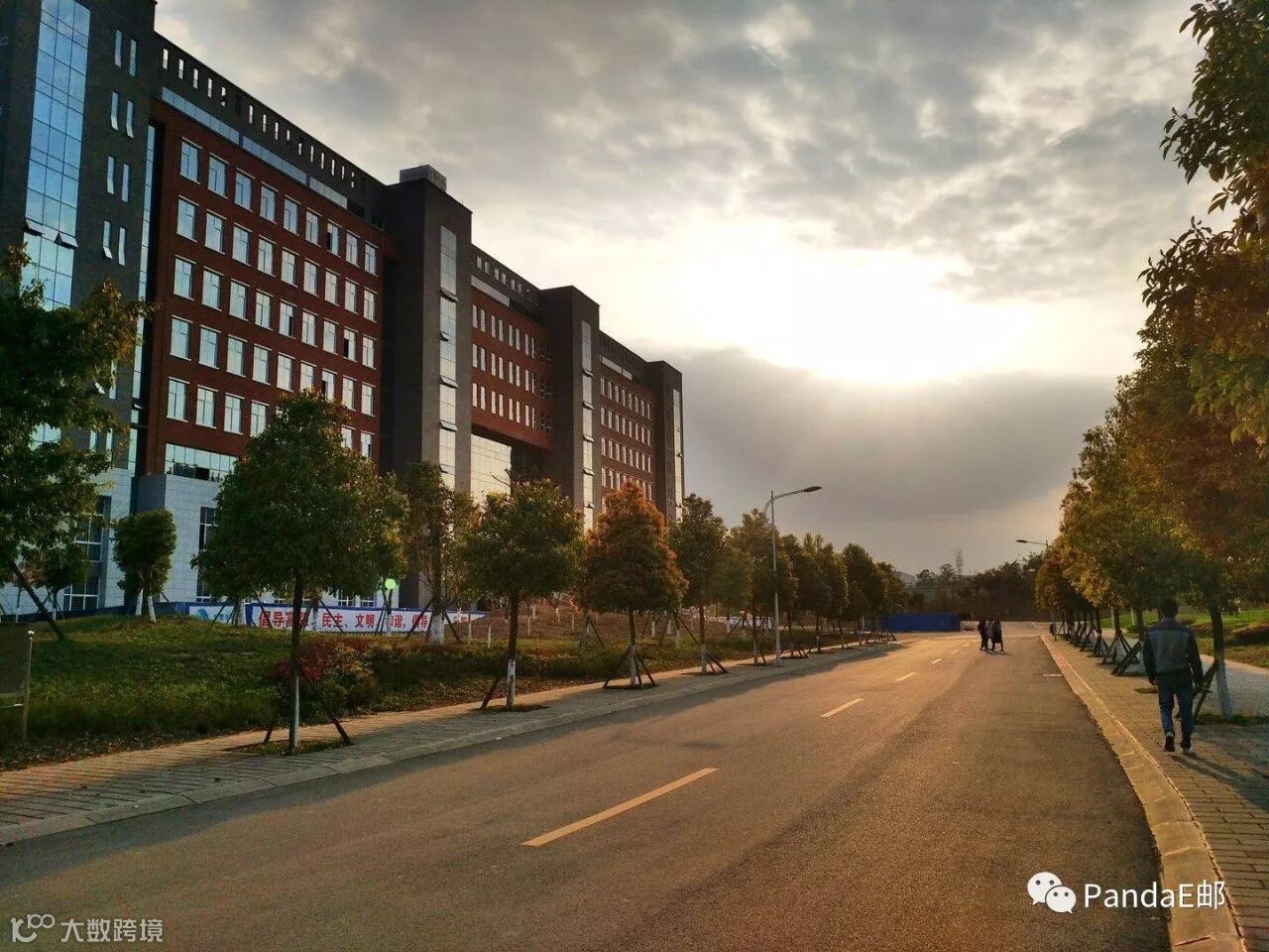 独自穿过校园的街道,落日的余晖伴随形单影只的学生穿行