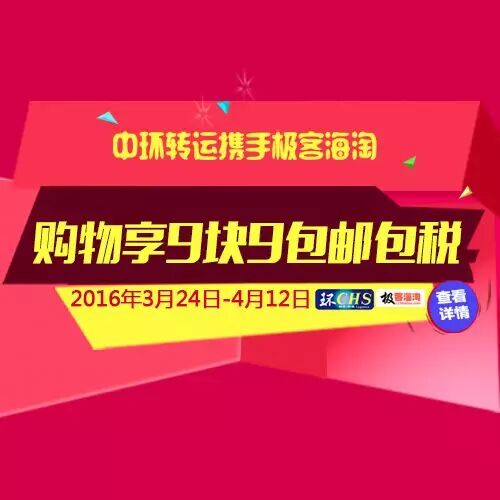3.支付运费原价,收货后在极客海淘晒单,并将晒单链接贴在活动帖下方,即可获得退还运费。(晒单暗号:我正在参加极客海淘和中环转运9.9包邮活动,我的仓位号是XXXXXX)