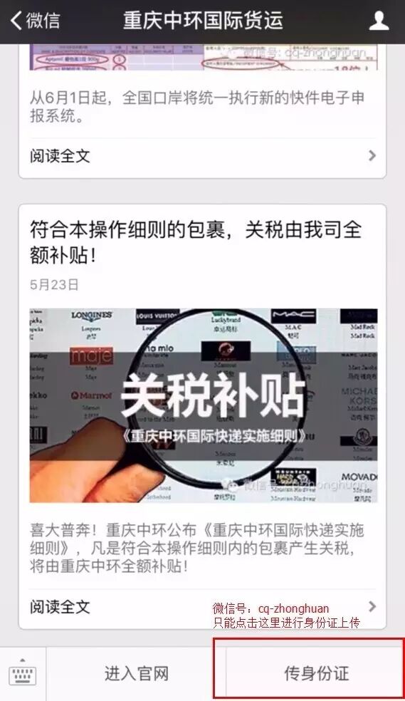 近期,我们收到用户因自己上传身份证不正确,导致清关出现问题的反馈。这里,我们将教会大家如何正确上传身份,便于重庆中环为大家提供优质的服务。谢谢大家的支持和配合!