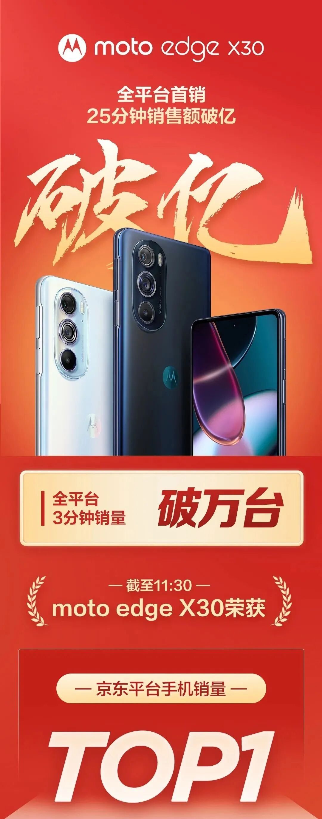 今天是12月15日,也是早前发布的首款骁龙8新旗舰摩托罗拉edge X30(详细参数、售价、体验视频可以戳蓝字回顾)的首销日,官方也在第一时间公布了战报。