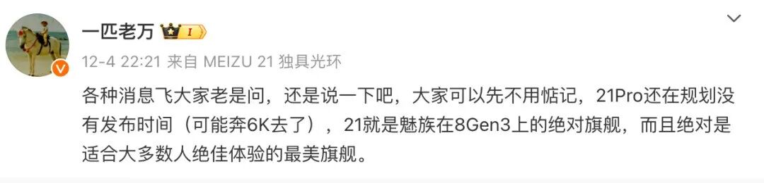 价格上,早前魅族科技助理副总裁曾在微博称魅族21 Pro(价格)可能奔6K去了,感兴趣的可以先观望下,等年后新消息。
