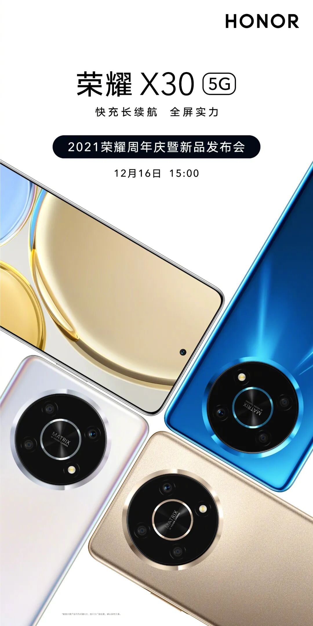 荣耀X30将于12月16日15点正式发布